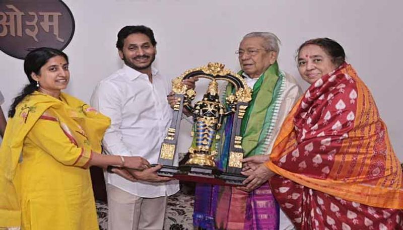 ఆంధ్రప్రదేశ్ గవర్నర్ బిశ్వభూషణ్ హరిచందన్ , సుప్రవ హరిచందన్ దంపతులతో రాష్ట్ర ముఖ్యమంత్రి వైఎస్ జగన్ మోహన్ రెడ్డి, భారతి దంపతులు భేటీ అయ్యారు, సోమవారం సాయంత్రం రాజ్ భవన్ కు చేరుకున్న ముఖ్యమంత్రి దంపతులకు గవర్నర్ వారి ప్రత్యేక ప్రధాన కార్యదర్శి ఆర్ పి సిసోడియా స్వాగతం పలికారు. గవర్నర్ ను వెంకటేశ్వర స్వామి మెమెంటో, శాలువాతో సత్కరించారు.