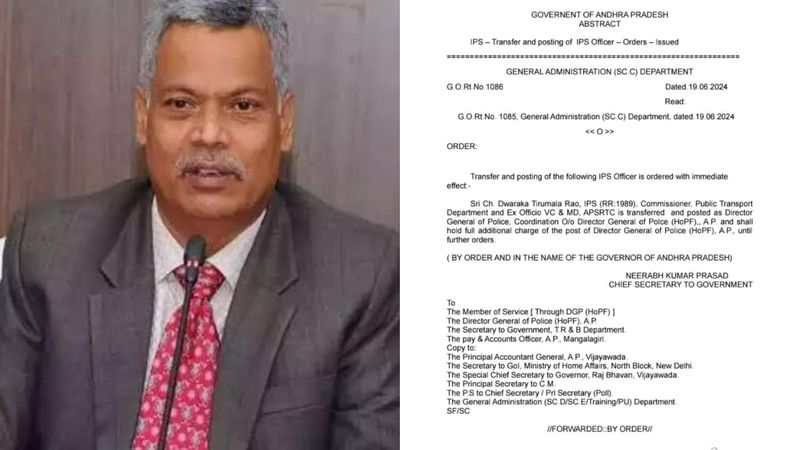 కొత్త ప్రభుత్వం ఏర్పాటవగానే తన మార్కు పాలనను ప్రారంభించింది. గత ప్రభుత్వానికి అనుకూలంగా వ్యవహరించిన ఐఏఎస్, ఐపీఎస్ అధికారులను సాగనంపడం ప్రారంభించింది. ఆయా శాఖల ఉన్నతాధికారులను సైతం మార్చేసింది. ఎన్నికల వేళ డీజీపీని మార్చేసిన ఈసీ.... వైసీపీతో అంటకాగుతున్నారన్న అభియోగాలు ఎదుర్కొన్న కేవీ రాజేంద్రనాథ్ రెడ్డి స్థానంలో హరీశ్ కుమార్ గుప్తాను నియమించింది. అయితే, ముఖ్యమంత్రి చంద్రబాబు ప్రమాణ స్వీకారోత్సవం వేళ ట్రాఫిక్ను క్రమబద్ధీకరించడంలో విఫలం కావడంతో... గవర్నర్ జస్టిస్ అబ్దుల్ నజీర్ ట్రాఫిక్లో ఇరుక్కుపోయారు. దీంతో ప్రధాని మోదీకి స్వాగతం పలికేందుకు గవర్నర్ గన్నవరం విమానాశ్రయానికి వెళ్లలేకపోయారు. ఈ వ్యవహారంలో డీజీపీ గుప్తాపై గవర్నర్ అసహనం వ్యక్తం చేసినట్లు తెలుస్తోంది. ఈ నేపథ్యంలో రాష్ట్ర ప్రభుత్వం కొత్త డీజీపీని నియమించింది. రాష్ట్రంలోని సీనియర్ ఐపీఎస్లో అగ్రస్థానంలో ఉన్న ఆర్టీసీ ఎండీ ద్వారకా తిరుమల రావుకు ఆంధ్రప్రదేశ్ కొత్త డీజీపీగా బాధ్యతలు అప్పగించింది. ఇప్పటికే సీఎస్, టీటీడీ ఈవో లాంటి కీలక పోస్టుల్లో చంద్రబాబు ప్రభుత్వం కొత్తవారిని నియమించింది.