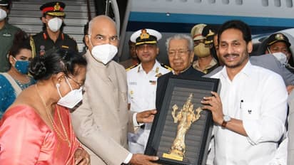 విశాఖపట్నంలో రేపు జరగనున్న ప్రెసిడెంట్ ఫ్లీట్ రివ్యూ 2022లో (president fleet review) పాల్గోనేందుకు విచ్చేసిన భారత రాష్ట్రపతి రామనాధ్ కొవింద్ (ramnath kovind) దంపతులకు ఏపీ సీఎం వైఎస్ జగన్ (ys jagan) ఘన స్వాగతం పలికారు. ఆయన వెంట మంత్రి కురసాల కన్నబాబు, ఆంధ్రప్రదేశ్ శాసనసభ స్పీకర్ తమ్మినేని సీతారాం, మంత్రులు, ఎమ్మెల్యేలు, ఎంపీలు, జిల్లా ఉన్నతాధికారులు వున్నారు. రాష్ట్రపతితోపాటు కేంద్ర రక్షణ మంత్రి రాజ్నాథ్ సింగ్, ఆంధ్రప్రదేశ్ గవర్నర్ బిశ్వభూషణ్ హరిచందన్, ఏపీ సీఎం వైఎస్ జగన్మోహన్రెడ్డి, త్రివిధ దళాల ఉన్నతాధికారులు ఈ కార్యక్రమంలో పాల్గొననున్నారు. ఈ సందర్భంగా విశాఖలో పోలీసులు పటిష్ఠ బందోబస్తు ఏర్పాటు చేశారు. సాయుధ దళాల సుప్రీం కమాండర్గా వ్యవహరించే రాష్ట్రపతి.. తన పదవీకాంలో ఒకసారి నౌకాదళం సమీక్ష నిర్వహిస్తారు. ఈ సందర్భంగా విశాఖపట్నంలో భారీ ఏర్పాట్లు చేశారు.