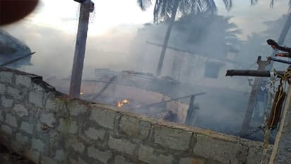 విశాఖపట్నంలో తృటిలో ఘోర ప్రమాదం తప్పింది. అచ్యుతాపురంలో అక్రమంగా నిల్వచేసిన గ్యాస్ సిలిండర్ల గోడౌన్ లో అగ్ని ప్రమాదం చోటుచేసుకుంది. గ్యాస్ సిలిండర్ లీకవ్వడం వల్లే ఈ ప్రమాదం జరిగి ఉండొచ్చని సమాచారం. సరైన సమయంలో అగ్నిమాపక సిబ్బంది వచ్చి ఎగిసిపడుతున్న మంటలను అదుపులోకి తేవడంతో స్థానికులు ఊపిరి పీల్చుకున్నారు.