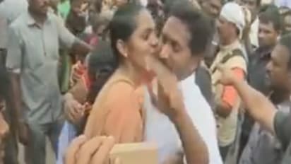 పాదయాత్రలో జగన్ ను ముద్దు పెట్టిన అమ్మాయి (వీడియో)