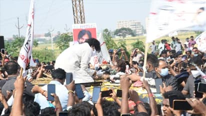 విజయవాడ: నివర్ తుఫాను బాధితులను పరామర్శించేందుకు జనసేన అధ్యక్షుడు పవన్ కళ్యాణ్ కృష్ణా జిల్లాలో చేస్తున్న పర్యటనలో అపశృతి చోటుచేసుకుంది. పామర్రు మండలం కనుమూరు వద్థ పవన్ కల్యాణ్ ర్యాలీ నిర్వహిస్తుండగా ప్రమాదం జరిగింది. భారీ వాహనాలు పవన్ వాహనాన్ని అనుసరిస్తుండగా రెండు కార్ల మధ్య ఓ బైక్ ఇరుక్కుంది. దీంతో బైక్ పై వెళుతున్న జనసేన కార్యకర్త కాలు విరిగింది. తీవ్రంగా గాయపడ్డ యువకున్ని వెంటనే హాస్పిటల్ కు తరలించి చికిత్స అందిస్తున్నారు.