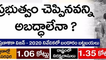 అంటే, ఇంతకాలం ప్రభుత్వం చెబుతున్నదానికి, వాస్తవ పరిస్ధితులకు ఏమాత్రం పొంతన లేదన్న విషయం ప్రభుత్వ డాక్యుమెంట్ ద్వారానే బయటపడింది. ఇప్పటి వరకూ 22 లక్షల మరుగుదొడ్లు కట్టించామని ప్రభుత్వం చెబుతున్నమాటల్లో నిజమెంతో అర్ధం కావటం లేదు. సిఎం సొంత జిల్లా చిత్తూరులోనే సుమారు 4 వేల ఆవాసాలుకు రోడ్డు సౌకర్యం లేదంటే పరిస్ధితి ఎలాగుందో అర్ధమవుతోంది. రాజధాని జిల్లాలైన కృష్ణా, గుంటూరు, తూర్పుగోదావరి మినహా మిగిలిన అన్నీ జిల్లాల్లోనూ 90 శాతం పంచాయితీల్లో బహిరంగ మలవిసర్జనే జరుగుతోందట. రాష్ట్రంలో అక్షరాస్యతా శాతం ఇప్పటికీ 67 శాతమే. అంటే ఐదు కోట్ల రాష్ట్ర జనాభాలో 1.35 కోట్ల మంది నిరక్షరాస్యులే. తూర్పుగోదావరి, గుంటూరు, కర్నూలు, అనంతపురం జిల్లాల్లో నిరక్షరాస్యత ఎక్కువట.