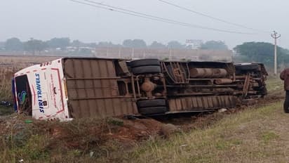 స్థానికులు క్షతగాత్రులకు సహాయక చర్యలు చేపట్టారు. ఈ బస్సు విశాఖపట్నం నుంచి హైదరాబాద్ వెల్తోంది. 40 మంది ప్రయాణికులతో ఉన్న బస్సు డ్రైవర్ నిద్రమత్తు వల్లే ప్రమాదం జరిగిందని ప్రాథమిక సమాచారం.