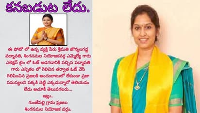 తమ గోడు వినిపించుకోకపోవడంతో ఇలా missing poster వేశామని గ్రామస్తులు చెబుతున్నారు. ప్రస్తుతం ఈ పోస్టర్ సోషల్ మీడియాలో వైరల్ గా మారింది. దీని మీద ఎమ్మెల్యే పద్మావతి ఏ విధింగా స్పందిస్తారో చూడాలి మరి..