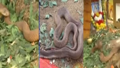 26 రోజుల క్రితం ఒక పొలం దగ్గర కనిపించిన ఆ పామును గ్రామస్తులు సుబ్రహ్మణ్యం స్వామి స్వరూపం అంటూ దైవంలా కొలిచారు. పాము దగ్గరికి వెళ్లి చేతులెత్తి మొక్కారు. అయితే పాము వారి శరీరంపై పాకుతూ కాటు వేయకపోవడం గమనార్హం. నాలుగు వారాలుగా అక్కడే ఉన్న పాము కొద్ది రోజులు నీరసంగా కనిపించినప్పటికీ... త్వరగా యాక్టివ్ అయ్యింది.