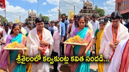 అంతకుముందు శ్రీశైలం భ్రమరాంబిక మల్లికార్జున స్వామి వారిని దర్శించుకోవడానికి వెళ్తున్న ఎమ్మెల్సీ కవిత కు కల్వకుర్తి వద్ద తెలంగాణ జాగృతి కార్యకర్తలు, నాయకులు గజమాలతో ఘన స్వాగతం పలికారు. నాగర్ కర్నూల్ జిల్లా అమ్రాబాద్ మండలం మన్ననూర్ గ్రామంలో ప్రభుత్వ విప్ ఎమ్మెల్యే గువ్వల బాలరాజు, టీఆర్ఎస్ నేతలు స్వాగతం పలికారు.