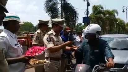 విజయవాడ వన్ టౌన్ పోలీసులు ప్రజలలో హెల్మెట్ ధరించాలని చెప్పెందుకు ఒక కొత్త పద్ధతి ఎంచుకున్నారు. హెల్మెట్ ధరించలేదని లాఠీ ఝళిపించకుండా గులాబీ పువ్వు ఇచ్చి, చాక్లెట్ కూడా అందించి హెల్మెట్ ధరించాల్సిన అవసరం గురించి ప్రేమగా బాధ్యతాయుతంగా చెబుతున్నారు. కొంత మంది హెల్మెట్ ధరించినా సరైన పద్ధతిలో ధరించకపోతే, వారి నేర్పిస్తున్నారు. అదెలా చేస్తున్నారో ఈ వీడియో చూడండి