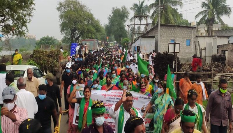 వైఎస్ జగన్ వికేంద్రీకరణ బిల్లు తీసుకొచ్చినప్పటి నుంచి అమరావత్రి ప్రాంత రైతులు (Amaravati farmers) వారి పోరాటాన్ని కొనసాగిస్తున్నారు. 700 రోజులకు పైగా రైతులు విరామం లేకుండా దీక్షలు కొనసాగిస్తున్నారు. ఏకైక రాజధానిగా అమరావతిని కొనసాగించాలని వారు న్యాయస్థానాలను ఆశ్రయించారు. తాము ప్రభుత్వం హామీ ఇవ్వడంతో.. వేలాది ఎకరాలను ఇచ్చామని.. అమరావతిని ఏకైక రాజధానిగా ప్రకటించేవరకు తమ పోరాటం కొనసాగుతుందని స్పష్టం చేస్తూ వచ్చారు. తాజాగా న్యాయస్థానం నుంచి దేవస్థానం పేరుతో పాదయాత్ర (amaravati farmers padayatra) చేపట్టారు.