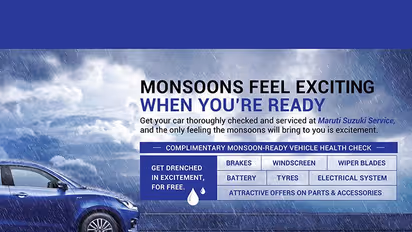 మారుతి తమ వినియోగదారులకు శుభవార్త అందించింది. దేశ వ్యాప్తంగా ఉన్న తమ వినియోగదారుల కోసం మాన్ సూన్ సర్విస్ క్యాంప్ ను నిర్వహిస్తున్నట్లు ఈ సంస్థ ప్రకటించింది. దీని ద్వారా తమ సంస్థకు చెందిన వాహనాల కండీషన్ ను ఉచితంగా తనిఖీ చేయనున్నారు. ఈ ఆఫర్ జూలై 9 వ తేదీ నుండి జూలై 31వ తేదీ వరకు దేశంలోని ప్రతి మారుతి సుజుకి సర్వీస్ సెంటర్ లో లభించనుంది.
