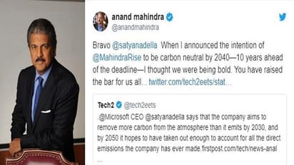 మైక్రోసాఫ్ట్ సీఈఓ కొత్త లక్ష్యం కోసం మహీంద్రా గ్రూప్ చైర్మన్ రాశారు.1975లో మైక్రోసాఫ్ట్ స్థాపించినప్పటి నుండి అది వెలువరించిన అన్ని కార్బన్ ఉద్గారాలను మైక్రోసాఫ్ట్ కార్ప్ 2050 నాటికి పర్యావరణం నుండి తొలగిస్తాం అని ప్రతిజ్ఞ చేసింది.