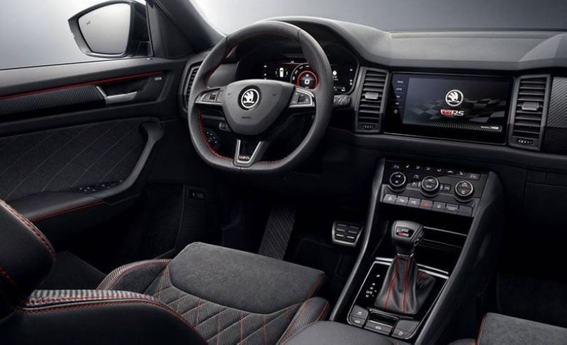 స్పోర్టి లుక్ని పూర్తి చేయడానికి మెటల్ పెడల్తో పాటు సీట్లపై ఆర్ఎస్ లోగో, గేర్ లివర్ కూడా ఉన్నాయి. కోడియాక్ ఆర్ఎస్ వర్చువల్ కాక్పిట్ ఇంటర్ఫేస్తో కూడి ఉంటుంది.ప్రస్తుతం ఉన్న ఆక్టేవియా ఆర్ఎస్ మాదిరిగానే, స్కోడా కోడియాక్ ఆర్ఎస్ భారతదేశానికి వస్తుంది మరియు పూర్తిగా నిర్మించిన యూనిట్ (సిబియు) మరియు ప్రీమియం ధరను సూచిస్తుంది. ఎస్యూవీ ధర ₹ 40-45 లక్షలు ఉంటుందని భావిస్తున్నాము.