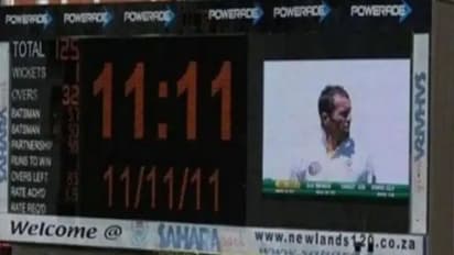3వ రోజు ఆటలో భాగంగా వికెట్ నష్టానికి 125 పరుగులు చేసింది దక్షిణాఫ్రికా. అయితే ఆ రోజున డేట్ 11/11/2011 కాగా.. ఉదయం 11.11 గంటలకు సౌతాఫ్రికా విజయానికి కేవలం 111 పరుగులు మాత్రమే కావాలి. ఆ సమయంలో ప్రేక్షకులు, అంపైర్ ఇయాన్ గౌల్డ్ ఒక నిమిషం పాటు ఒంటికాలిపై నిలబడ్డారు. అప్పుడు స్కోర్ బోర్డ్పై 11.11 .. 11/11/11 అని వుంది. నిజంగా అది ఎంత యాదృచ్ఛికం.. ఆటలో అరుదైన క్షణం. అంతేకాదు.. మరో శతాబ్ధం వరకు ఇలాంటి ఘటన పునరావృతమయ్యే అవకాశం లేదు.