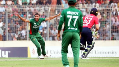 సాఫీగా సాగుతున్న ఇంగ్లాండ్ ఇన్నింగ్స్ ఒక్కసారిగా కుదుపునకు లోనైంది. 14వ ఓవర్ వేసిన ముస్తాఫిజుర్.. తొలి బంతికి డేవిడ్ మలన్ ను ఔట్ చేశాడు. అదే ఓవర్లో రెండో బంతికి మెహది హసన్ మిరాజ్ వేసిన త్రో తో రనౌట్ అయ్యాడు. కొద్దిసేపటికే మోయిన్ అలీ (9), సామ్ కరన్ (4) కూడా పెవిలియన్ బాట పట్టారు.