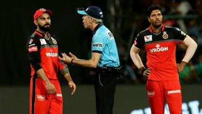 బెంగళూరు చిన్న స్వామి స్టేడియంలో రాయల్స్ చాలెంజర్స్ ,సన్ రైజర్స్ మ్యాచ్ లో కోహ్లీ, అంపైర్ మధ్య వాగ్వివాదం చోటుచేసుకున్న విషయం తెలిసిందే. ఈ మ్యాచ్ లో కీలక సమయంలో అంపైర్ నిగెల్ లాంగ్ తప్పుడు నిర్ణయాన్ని ప్రకటించడంతో బౌలర్ ఉమేశ్ యాదవ్, కెప్టెన్ కోహ్లీ ఇదేంటని ప్రశ్నించారు. తనను అలా నిలదీయడంతో కోపోద్రిక్తుడైన అంపైర్ వారిపై కసురుకున్నాడు. ముఖ్యంగా కోహ్లీ-అంపైర్ ల మధ్య వాగ్వాదం తారాస్థాయికి చేరగా అంపైరింగ్ పై వున్న గౌరవంతో కోహ్లీ కాస్త వెనక్కితగ్గాడు.