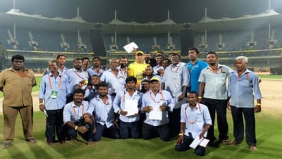 బుధవారం చెన్నై సూపర్ కింగ్స్ తమ సొంత మైదానంలో చివరి లీగ్ మ్యాచ్ ఆడింది. ఈ మ్యాచ్ ను కూడా గెలుచుకున్న ధోని చెన్నై అభిమానులతో తన అనుబంధాన్ని గురించి మాట్లాడాడు. తమకు మద్దతుగా నిలిచిన తమిళ ప్రజలకు అతడు ధన్యవాదాలు తెలిపాడు. ఇదే సమయంలో చెపాక్ స్టేడియాన్ని మ్యాచుల నిర్వహణకోసం తీర్చిదిద్దిన గ్రౌండ్ సిబ్బందిని ఆయన ప్రశంసించాడు. కేవలం ప్రశంసలతో సరిపెట్టకుండా వారితో ఫోటో దిగి తన గొప్ప మనసును చాటుకున్నాడు. చెన్నై ఫ్రాంచైజీ కూడా వారికి ధన్యవాదాలు తెలుపుతూ ట్విట్టర్ లో పోస్ట్ పెట్టి దానికి ధోనితో కలిసి గ్రౌండ్ సిబ్బంది దిగిన ఫోటోను జత చేసింది.