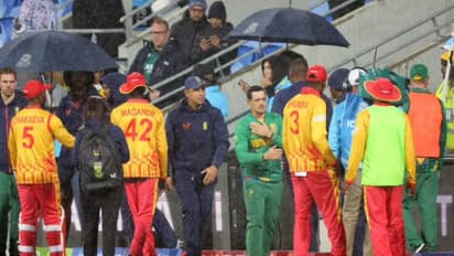 పొట్టి ప్రపంచకప్ వేటను ఘనంగా ఆరంభించాలనుకున్న దక్షిణాఫ్రికా ఆశలపై వరుణుడు నీళ్లు చల్లాడు. గ్రూప్-2లో భాగంగా జింబాబ్వేతో పోటీ పడిన సౌతాఫ్రికా.. 80 పరుగుల ఛేదనలో వర్షం పదే పదే అంతరాయం కలిగించింది. దీంతో ఈ మ్యాచ్ ఫలితం తేలకుండానే ముగిసింది. అంతకుముందు 9 ఓవర్లకు కుదించిన ఈ మ్యాచ్ లో తొలుత బ్యాటింగ్ చేసిన జింబాబ్వే.. 9 ఓవర్లలో 5 వికెట్ల నష్టానికి 80 పరుగులు చేసింది. వెస్లీ మాధేవేరె (18 బంతుల్లో 35 నాటౌట్, 4 ఫోర్లు, 1 సిక్సర్), మిల్టన్ శుబ్మా (20 బంతుల్లో 18, 2 ఫోర్లు) ధాటిగా ఆడారు. దక్షిణాఫ్రికా లక్ష్య ఛేదనను ఘనంగా ఆరంభించినప్పటికీ రెండు సార్లు వర్షం పడటంతో మ్యాచ్ ను అర్థాంతరంగా నిలిపేసి పాయింట్లను రెండు జట్లకు సమానంగా పంచారు.