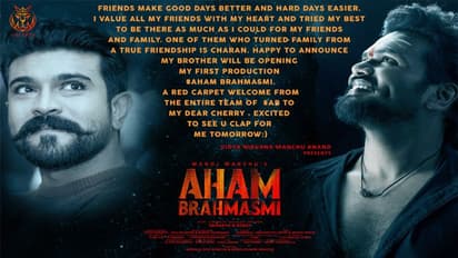 మనోజ్ స్వయంగా ఈ విషయాన్ని తెలియజేస్తూ ట్వీట్ చేశాడు. తాన్ స్నేహితుడు రాంచరణ్ రాబోతున్నట్లు మనోజ్ ఎమోషనల్ కామెంట్స్ చేశాడు. స్నేహితుల వల్ల సంతోషాలు మరింత ఎక్కువవుతాయి... కష్టాలు తగ్గుతాయి. అలాంటి నిజమైన స్నేహితుడు రాంచరణ్. నా ఫస్ట్ ప్రొడక్షన్ లో తెరకెక్కబోతున్న అహం బ్రహ్మాస్మి చిత్ర ఓపెనింగ్ కు రాంచరణ్ అతిథిగా రాబోతున్నాడు. ఈ విషయాన్ని మీ అందరికి సంతోషంగా ప్రకటిస్తున్నా అని మంచు మనోజ్ పేర్కొన్నాడు.