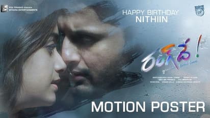 ఈ నెల 30 న చిత్ర కథానాయకుడు నితిన్ పుట్టినరోజు సందర్భంగా పురస్కరించుకొని ఆదివారం 'రంగ్ దే' చిత్రం మోషన్ పోస్టర్ ను విడుదల చేసింది చిత్రం యూనిట్. చిత్ర హీరో హీరోయిన్లు అను, అర్జున్ (నితిన్, కీర్తి సురేష్) లను పరిచయం చేస్తూ ఈ మోషన్ పోస్టర్ రూపొందించారు. నితిన్,కీర్తి సురేష్ జంటగా నటిస్తున్న ఈ 'రంగ్ దే' సినిమాలో సీనియర్ నటుడు నరేష్, వినీత్, రోహిణి, కౌసల్య, గాయత్రి రఘురామ్, బ్రహ్మాజీ, వెన్నెల కిషోర్, సత్యం రాజేష్, అభినవ్ గోమటం, సుహాస్, మాస్టర్ రోనిత్ తదితరులు నటిస్తున్నారు.