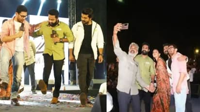 హిందీ వెర్షన్స్ ప్రమోషన్స్ లో భాగం గా ఢిల్లీ వెళ్లారు ఆర్ ఆర్ ఆర్ మూవీ టీమ్. అమీర్ ఖాన్ ఈ వేడుక కి ముఖ్య అతిథిగా హాజరయ్యారు. ఈ వేడుక లో అమీర్ ఖాన్ నాటు నాటు హిందీ బీట్ కి స్టెప్పులు వేశారు. రామ్ చరణ్, జూనియర్ ఎన్టీఆర్, అలియా భట్ లు సైతం స్టెప్పులు వేయడం జరిగింది. అందుకు సంబంధించిన వీడియో సోషల్ మీడియా లో వైరల్ గా మారుతోంది. మీరూ ఈ వీడియో పై లుక్కేయండి.