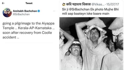 అయితే ఆ ప్రమాదం నుంచి కోలుకున్న తర్వాత అయ్యప్ప తీర్థయాత్రకు వెళ్లారు. అప్పడు తీసిన ఒక ఫొటో బిగ్ బీ అభిమాని వికాస్ అనే వ్యక్తికి దొరికింది. దీంతో ఆ ఫొటోను అమితాబ్ కు ట్యాగ్ చేస్తూ కాస్త ఫొటోని సన్నివేశాన్ని వివరించాలని కోరాడు. దీంతో అమితాబ్ స్పందిస్తూ కూలీ మూలీ యాక్సిడెంట్ త్వర్వాత అయ్యప్ప తీర్థయాత్రకు వెళ్తున్నప్పటిదని వివరించారు.