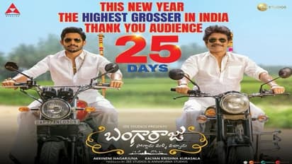 ఫస్ట్ షోతోనే సూపర్ హిట్ టాక్ తెచ్చుకున్న బంగార్రాజు (Bangarraju).. థియేటర్లకు సంక్రాంతి సంబరాలు తీసుకొచ్చింది.ఈ సినిమా తెలుగు రాష్ట్రాలతో పాటు, ఓవర్సీస్ లోను భారీ వసూళ్లను రాబట్టింది. సంక్రాంతి బరిలోకి దిగిన సినిమాల్లో విన్నర్ గా నిలిచింది. ఇక ఈ మూవీ రిలీజ్ అయ్యి 25 రోజులను పూర్తిచేసుకుంది. ఈ సందర్భంగా సిల్వర్ జూబ్లీ జోష్ లో ఉన్నారు బంగార్రాజు (Bangarraju) టీమ్. మూవీని ఇంత సక్సెస్ చేసిన ఆడియన్స్ కి థ్యాంక్స్ చెబుతూ టీమ్ స్పెషల్ పోస్టర్ ను కూడా రిలీజ్ చేసింది.