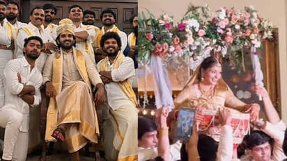 పెళ్లి వేడుక నుంచి కొన్ని ఎక్స్ క్లూజివ్ విజువల్స్ వచ్చాయి. కిరణ్ అబ్బవరం. రహస్య వధూవరులుగా ముస్తాబై పెళ్లి మండపానికి వెళుతున్నారు. దీనితో బంధు మిత్రులు వారిని సాంప్రదాయ పద్దతిలో మండపం వద్దకు తీసుకుని వెళుతున్నారు. కిరణ్ అబ్బవరం సాంప్రదాయ పంచె కట్టులో కనిపిస్తున్నాడు. ఇక రహస్య గోరఖ్ అయితే పట్టు చీరలో వెలిగిపోతోంది. ఈ విజువల్స్ చూడ ముచ్చటగా ఉన్నాయి.