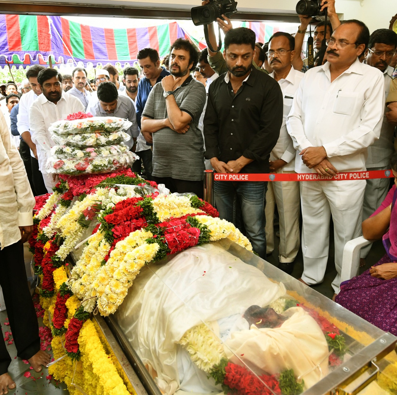 హరికృష్ణ భౌతిక కాయాన్ని సందర్శించి నివాళులు అర్పించిన కేసీఆర్