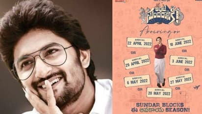 కొత్తగా ఈ సినిమాను ప్రమోట్ చేయాలని అనకున్నారు టీమ్. హీరో నానీ (Nani) అప్పుడే ఈ విషయంలో ముందడుగు వేశాడు. ట్రిపుల్ ఆర్ (RRR) లాంటి పెద్ద పెద్ద సినిమాలన్నీ రెండు రెండు రిలీజ్ డేట్లు ఇస్తూ.. ఏది వీలైయే అది తీసుకుంటామని పోస్టర్లు రిలీజ్ చేస్తుండటంతో... వారందరికి తన స్టైల్లో కౌంటర్ ఇచ్చాడు నానీ (Nani).. అంటే సుందరానికి (Ante Sundaraniki) సినిమాకి ఒకటి కాదు రెండు కాదు ఏకంగా ఏడు రిలీజ్ డేట్స్ ప్రకటించి అందరికీ షాక్ ఇచ్చారు. ఈ పోస్టర్ ను నానీ (Nani) తన ట్విట్టర్ పేజ్ లో పోస్ట్ చేశాడు.