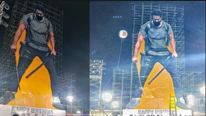 గ్లోబల్ స్టార్ ప్రభాస్.. ఈ పుట్టిన రోజు చాలా స్పెషల్ అని చెప్పొచ్చు. ఆయనకు సంబంధించిన కటౌట్ని నెలకొల్పారు ఫ్యాన్స్. కుకట్పల్లిలోని కతైలాపూర్ గ్రౌండ్లో భారీగా డార్లింగ్ కటౌట్ని నిర్మించారు. `సలార్` సినిమాలోని రెండు కత్తుల పట్టుకుని ప్రత్యర్థులను అంతం చేసే ఫోటోని కటౌట్గా నిర్మించారు. అయితే దీని హైట్ ఇప్పుడు హాట్ టాపిక్ అవుతుంది. ఇది 230 ఫీట్ల హైట్ తో నిర్మించడం విశేషం. ఇప్పటి వరకు మరే హీరో కటౌట్ లు కూడా ఇంతటి హైట్తో నిర్మించలేదు. ఈ విషయంలో ప్రభాస్ రికార్డు సృష్టించారని చెప్పొచ్చు. దీంతో ఈ బర్త్ డే ని చాలా స్పెషల్గా మార్చారు ఫ్యాన్స్.
