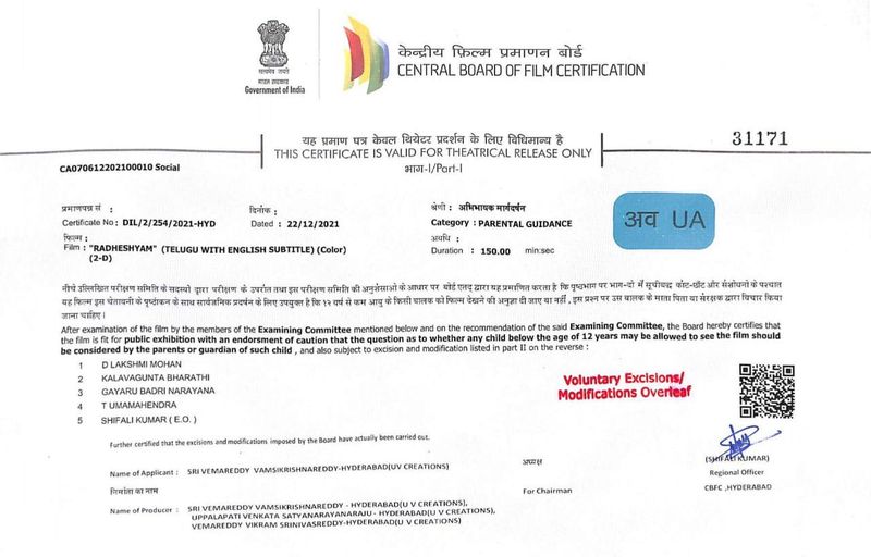రాధే శ్యామ్ చిత్రం శుక్రవారం థియేటర్స్ లో సందడి చేయడం మాత్రమే మిగిలి ఉంది. అన్ని కార్యక్రమాలు పూర్తయ్యాయి. ఇటీవల సెన్సార్ కూడా ముగిసింది. ఇలాంటి తరుణంలో ఒక న్యూస్ ఈ చిత్రం గురించి వైరల్ గా మారింది. ఆ న్యూస్ నిజం కూడా. ఇంతకీ అదేంటంటే.. రాధే శ్యామ్ సెన్సార్ పూర్తి చేసుకున్నప్పుడు రన్ టైం 2 గంటల 30 నిమిషాలుగా ఫైనల్ చేసారు.