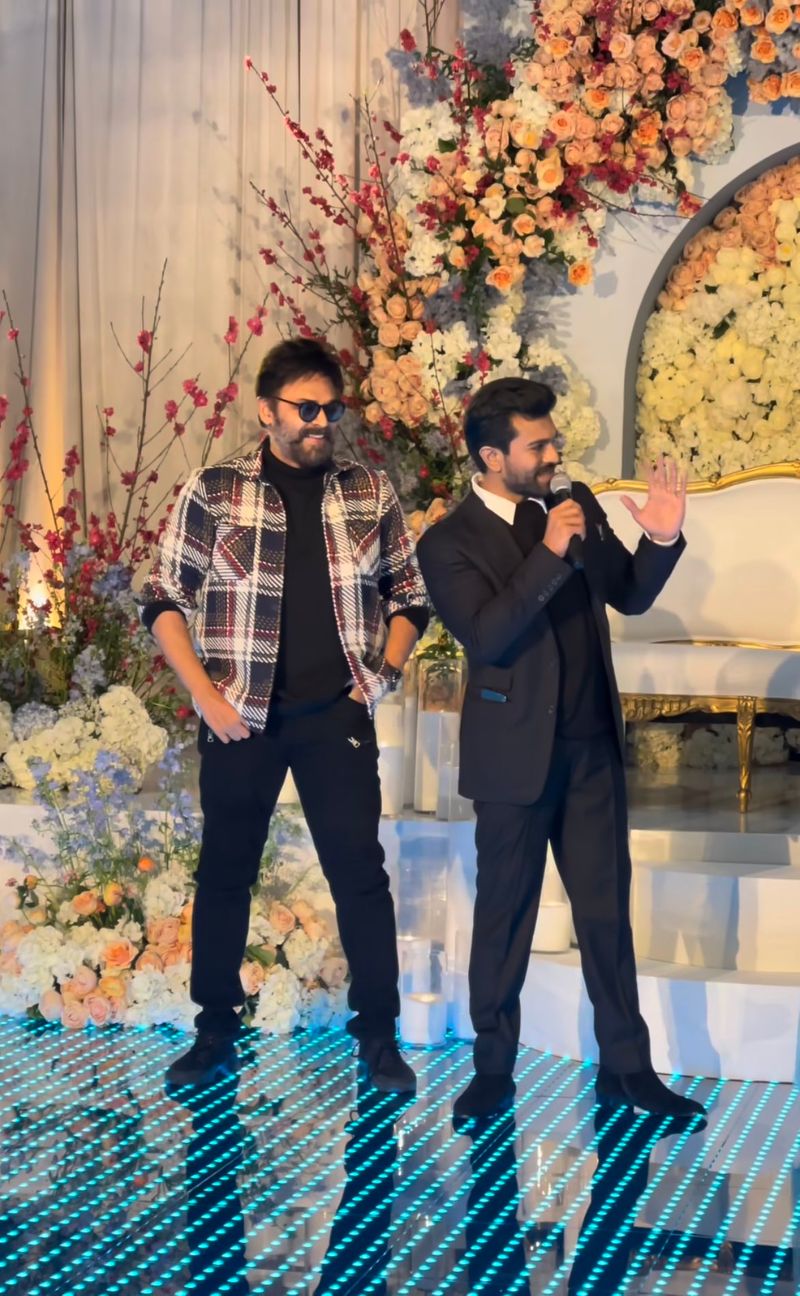 పెళ్లి వేడుకలో రాంచరణ్, వెంకటేష్ భలే సందడి చేశారు. రాంచరణ్ కి శుభాకాంక్షలు చెబుతూనే వెంకటేష్ కాస్త ఆటపట్టించారు. అమెరికన్ స్లాంగ్ లో మాట్లాడుతూ ' ఇట్స్ నాటు నాటు హే మిస్టర్ చరణ్.. ఆల్ ది అవార్డ్స్ గోస్ టు చరణ్ ఒకే' అని అన్నారు. దీనికి చరణ్ సమాధానం ఇస్తూ.. థాంక్యూ సో మచ్ వెంకీ అన్నా అని బదులిచ్చాడు.