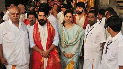 తిరుమల శ్రీ వేంకటేశ్వర స్వామివారిని ప్రముఖ సినీనటుడు రాంచరణ్, ఉపాసన దంపతులు దర్శించుకున్నారు. సోమవారం ఉదయం వీఐపీ ప్రారంభ దర్శనంలో స్వామివారి సేవలో పాల్గొన్నారు. తితిదే అధికారులు వారికి స్వాగతం పలికి దర్శనం ఏర్పాటు చేశారు. దర్శనం అనంతరం రంగనాయకుల మండపంలో శ్రీవారి ప్రసాదం తీసుకున్నారు. ఆలయం ఎదుట రామ్చరణ్ను చూసేందుకు భక్తులు, అభిమానులు పోటీపడ్డారు.