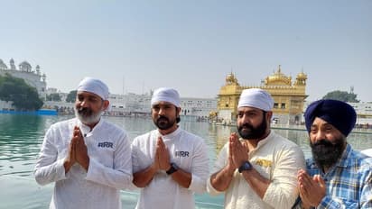 ఢిల్లీ ప్రమోషన్ ఈవెంట్ కూడా సూపర్ సక్సెస్ అని చెప్పాలి. ఈవెంట్ మొత్తం సరదా సరదాగా గడిచింది. ఎన్టీఆర్, చరణ్ అమిర్ ఖాన్ తో నాటు నాటు సాంగ్ స్టెప్ వేయించారు. కాగా నేడు అమృత్ సర్ లో ఆర్ ఆర్ ఆర్ టీమ్ మీడియాతో ముచ్చటించనున్నారు. ఇక ఈవెంట్ కి ముందు రాజమౌళి(Rajamouli), ఎన్టీఆర్, చరణ్ ప్రసిద్ధ స్వర్ణ దేవాలయాన్ని (Golden Temple)సందర్శించారు. వీరి స్వర్ణ దేవాలయ సందర్శనానికి సంబంధించిన ఫోటోలు వైరల్ అవుతున్నాయి. ముగ్గురూ సాంప్రదాయ తెలుపు దుస్తులు ధరించి, తలకు కర్చీఫ్ కట్టుకున్నారు.