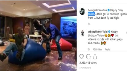తన సోదరుడి కొడుకైన యోహాన్ తో కలిసి విచ్చల విడిగా ఎంజాయ్ చేసినట్లు తెలుస్తోంది. యోహాన్ పుట్టినరోజు కావడంతో స్పెషల్ గా పార్టీ ఇచ్చిన సల్మాన్ కాసేపు వారితో ఆడుకున్నాడు. బీన్ బ్యాగ్ పై కూర్చున్న యోహాన్ ని వెనకనుంచి అర్బాజ్ ఖాన్ గాల్లోకి లేపితే ముందు నుంచి సల్మాన్ జాగ్రత్తగా పట్టుకున్నాడు.