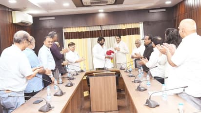 ఇటీవల ఆంధ్ర ప్రదేశ్లో కొత్త ప్రభుత్వం ఏర్పడిన విషయం తెలిసిందే. సీఎంగా చంద్రబాబు నాయుడు, డిప్యూటీ సీఎంగా పవన్ కళ్యాణ్ బాధ్యతలు చేపట్టారు. అలాగే సినిమాటోగ్రఫీ మంత్రిగా కందుల దుర్గేష్ బాధ్యతలు తీసుకున్నారు. కొత్త ప్రభుత్వం ఏర్పడి దాదాపు పది రోజులు దాటింది. ఈ నేపథ్యంలో తెలుగు సినీ పరిశ్రమకి చెందిన ప్రముఖ నిర్మాతలు డిప్యూటీ సీఎం పవన్ కళ్యాణ్ని కలిశారు. విజయవాడ క్యాంపు కార్యాలయంలో పవన్ని నిర్మాతలు సోమవారం మర్యాద పూర్వకంగా కలిసి ఆయనకు అభినందనలు తెలిపారు. `కల్కి2898ఏడీ` నిర్మాత సి అశ్వినీదత్ పవన్కి పుష్పగుచ్ఛం ఇచ్చి అభినందనలు తెలియచేయడం విశేషం.