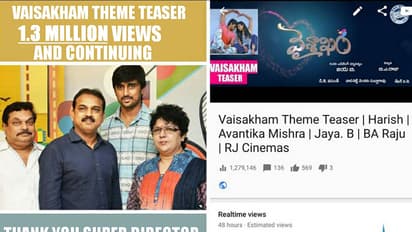 ఈ సందర్భంగా నిర్మాత బి.ఎ.రాజు మాట్లాడుతూ - ''మా 'వైశాఖం' చిత్రం థీమ్ టీజర్కి ఒక్కరోజులోనే 1.3 మిలియన్ వ్యూస్ రావడం మాకెంతో సంతోషాన్ని కలిగిస్తోంది. యూ ట్యూబ్లో మా చిత్రం థీమ్ టీజర్ని చూసి ఎంజాయ్ చేస్తున్న ప్రేక్షకులందరికీ ధన్యవాదాలు. అలాగే ఈ టీజర్ని రిలీజ్ చేసిన సూపర్ డైరెక్టర్ కొరటాల శివగారికి మా స్పెషల్ థాంక్స్. యూత్కి, మాస్కి, ఫ్యామిలీ ఆడియన్స్కి అందరికీ నచ్చే యూనివర్సల్ సబ్జెక్ట్తో రూపొందిన 'వైశాఖం' ప్రతి ఒక్కరికీ కనెక్ట్ అవుతుంది. సమ్మర్ స్పెషల్గా త్వరలోనే ఈ చిత్రాన్ని వరల్డ్వైడ్గా రిలీజ్ చేస్తున్నాం'' అన్నారు.