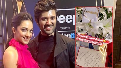 'కబీర్ సింగ్ హిట్ అయినందుకు కంగ్రాట్స్ కియారా.. ఈ సక్సెస్ ని ఎంజాయ్ చెయ్.. నా ఆనందంతో పాటు.. నా బట్టలను కూడా పంపుతున్నాను. ఇలా అంటే తప్పుగా వినిపిస్తుంది కదా.. నా బ్రాండ్ దుస్తులను పంపాను' అని తెలిపారు. గిఫ్ట్ అందుకున్న కియారా సోషల్ మీడియా వేదికగా విజయ్ దేవరకొండకి ధన్యవాదాలు చెప్పింది.