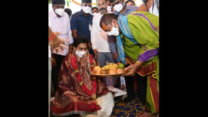 దేవతా మూర్తులకు హారతి ఇస్తున్న జగన్