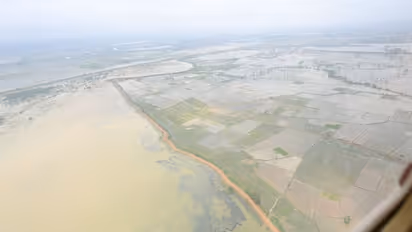 నీటమునిగిన ప్రాంతాల ఏరియల్ దృశ్యాలు