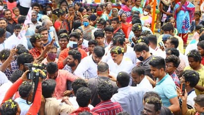 పూల వర్షం కురిపిస్తూ, గజమాలతో... జనసేన పిఎసి ఛైర్మన్ నాదెండ్లకు ఘనస్వాగతం (ఫోటోలు)