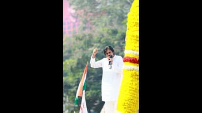 గుడివాడలో పవన్ కల్యాణ్ కు ఘనస్వాగతం... గజమాలలు, పూల వర్షంతో