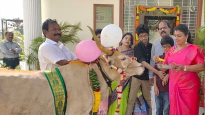 కనుమ పండగ రోజున ఇంటికి ఆవును ఆహ్వానించారు. ఆ ఆవుకు పూజలు చేశారు. కనుమ అంటేనే పశువుల పండగ అనే విషయం మనకు తెలిసిందే. ఈ నేపథ్యంలో.. ఆమె పశువులకు పూజ చేశారు.