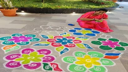 ముగ్గులు పెడుతూ రోజా వయ్యారాల రంగోలీ