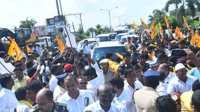 విజయవాడ : తెలుగురాష్ట్రాల్లో భారీ వర్షాలు కురుస్తుండటంతో వరద నీరు జనావాసాలనే కాదు పంటలను ముంచుతోంది. ముఖ్యంగా గోదావరి నది ఉప్పొంగడంతో పరివాహక ప్రాంతాల్లోని ప్రజలు తీవ్రంగా నష్టపోయారు. ఇలా గోదావరి వరదల్లో నష్టపోయిన ప్రజల కష్టాలను తెలుసుకునేందుకు మాజీ సీఎం, టిడిపి అధినేత చంద్రబాబు నాయుడు తెలుగురాష్ట్రాల్లో పర్యటిస్తున్నారు. ఏపీలోని పోలవరం ముంపు గ్రామాలతో పాటు తెలంగాణలో భద్రాచలం ప్రాంతంలో వరద ముంపు గ్రామాల్లో నేడు (గురువారం) చంద్రబాబు పర్యటించనున్నారు. ఇందుకోసం బయలుదేరిన ఆయనకు విజయవాడ, ఇబ్రహీంపట్నంలో టిడిపి శ్రేణులు ఘనస్వాగతం పలికాయి. ఓ ప్రైవేట్ స్కూల్ విద్యార్థులు చంద్రబాబు కోసం రోడ్డుపైకి వచ్చి ఆయన కాన్వాయ్ పై పూలుచల్లి అభిమానాన్ని చాటుకున్నారు.
