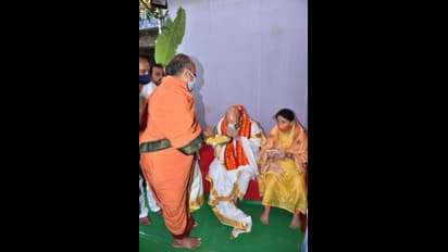 శ్రీశైలం మల్లిఖార్జున స్వామి దేవాలయంలో కేంద్ర హోంమంత్రి అమిత్ షా... ఆశీర్వదిస్తున్న వేద పండితులు