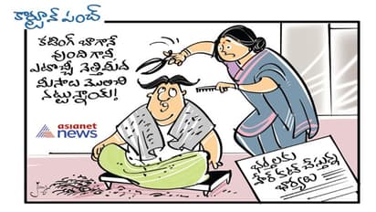 భర్తలకు హెయిర్ కట్ చేస్తున్న భార్యలు