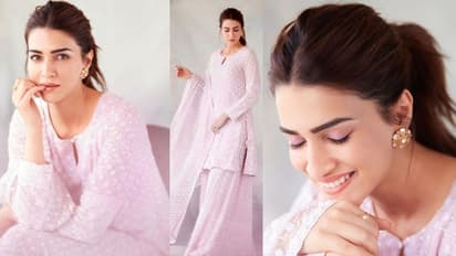 పాలరోజా డ్రెస్ లో చందమామలా మెరిసిన ఆదిపురుష్ హీరోయిన్... కృతి మెస్మరైజింగ్ లుక్ వైరల్!