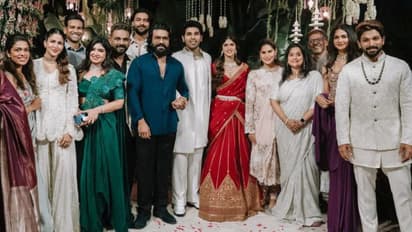 వేడుకకు మెగాస్టార్ చిరంజీవి, నాగబాబు కూడా హాజరయ్యారు. అతిథులతో కూర్చున్న చిరంజీవి, నాగబాబు ఫోటోలు కూడా సోషల్ మీడియాలో వైరల్ అవుతున్నాయి. దాంతో ఈ ఫోటోలకు ఫ్యాన్న్ రకరకాల కామెంట్లు పెడుతున్నారు. తమ సంతోషాన్ని వ్యక్తం చేస్తూ.. పిక్స్ ను వైరల్ చేస్తున్నారు. భారీగా షేర్ చేస్తున్నారు.