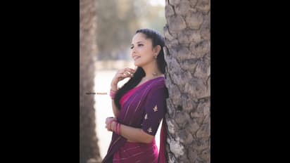పింక్ అండ్ పర్ఫుల్ కాంబినేషన్ కలిగిన ఓణీలో చిలిపి ఫోజులిచ్చింది. హాఫ్ శారీ అనసూయ వయసు పదేళ్లు తగ్గించేసింది. పాతికేళ్ల కాలేజ్ గర్ల్ గా అనసూయ లేటెస్ట్ లుక్ ఉంది.